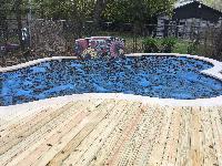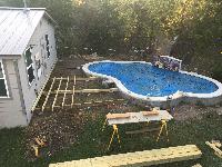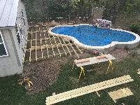 Now that the pool had a beautiful mosaic and was filled, we needed a deck around it.