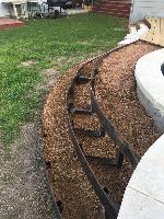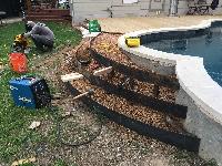 I designed it so that the stairs mirrored the curves of the pool. The steps are made with welded steel risers. They are filled with decomposed granite and then topped with slabs of limestone.