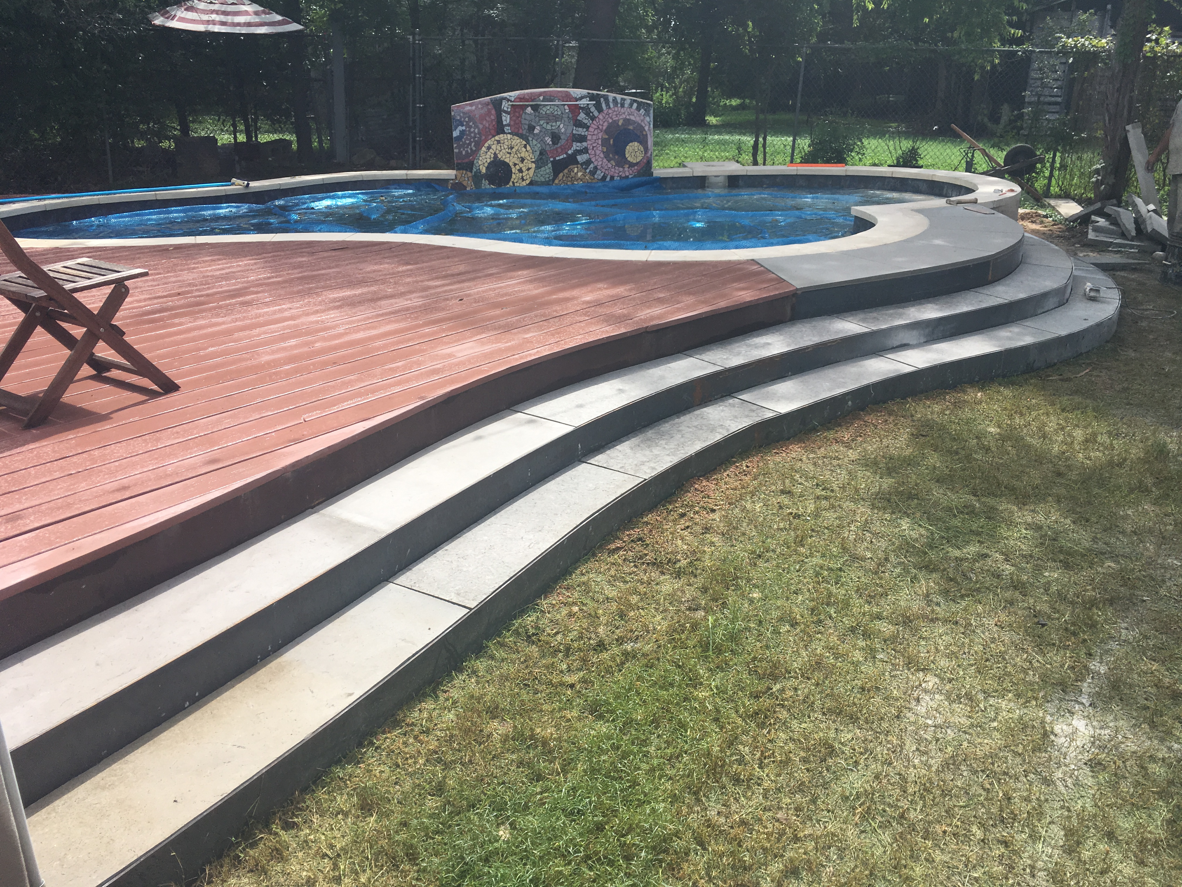 pool deck stonework welding stairs