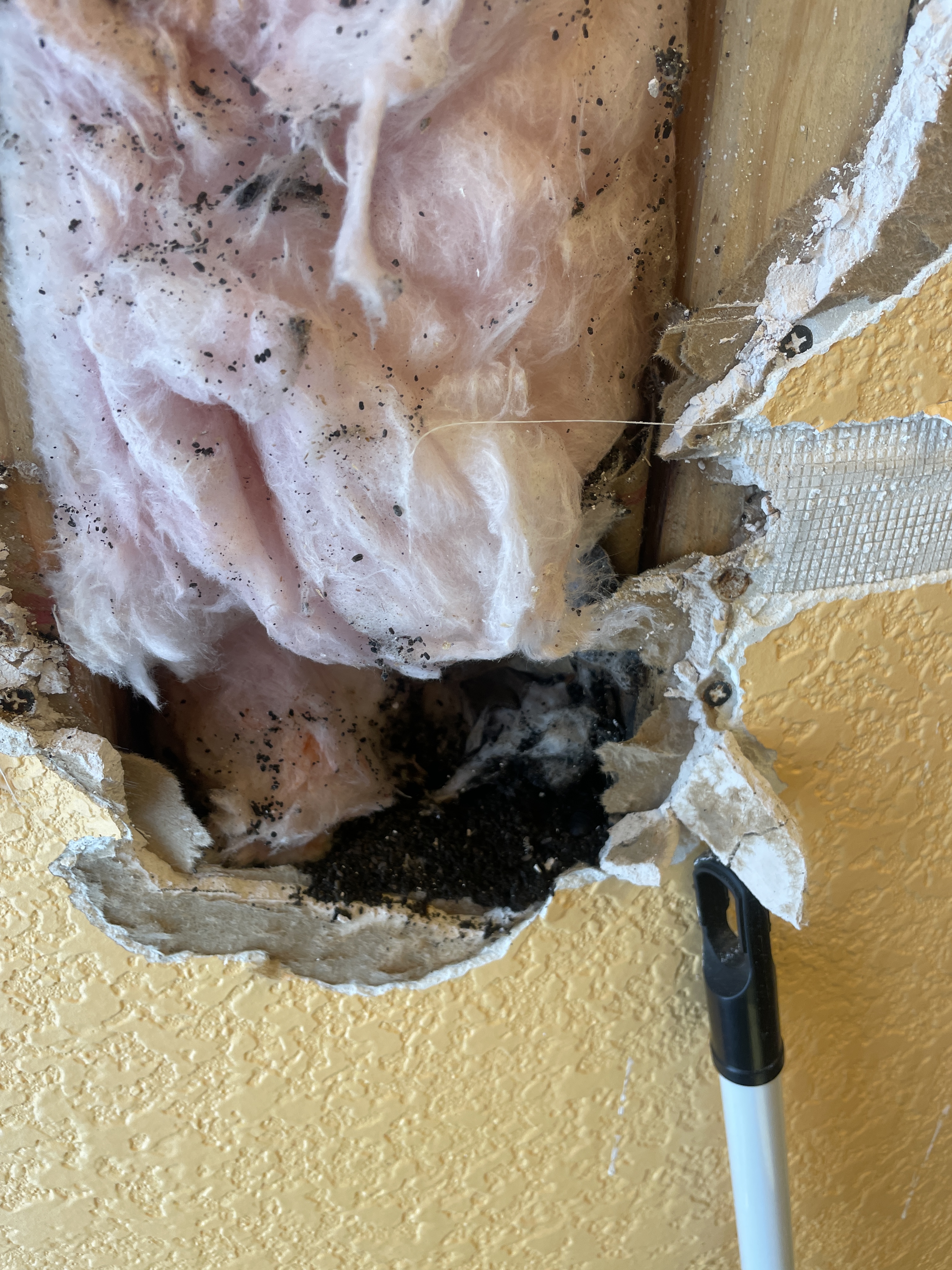 Water marks down the inside of the drywall.