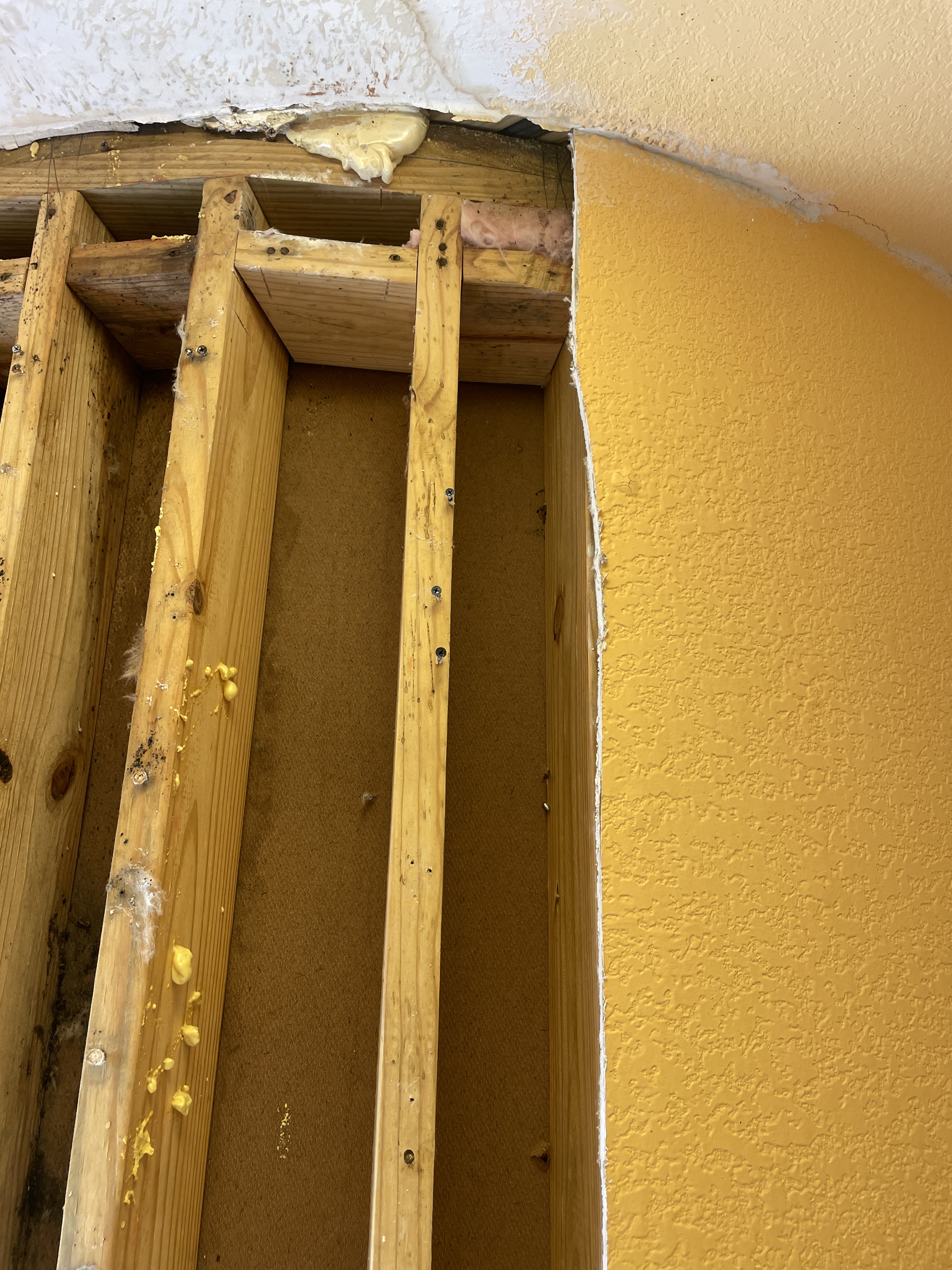 Mostly dry at the top - some water marks in ceiling