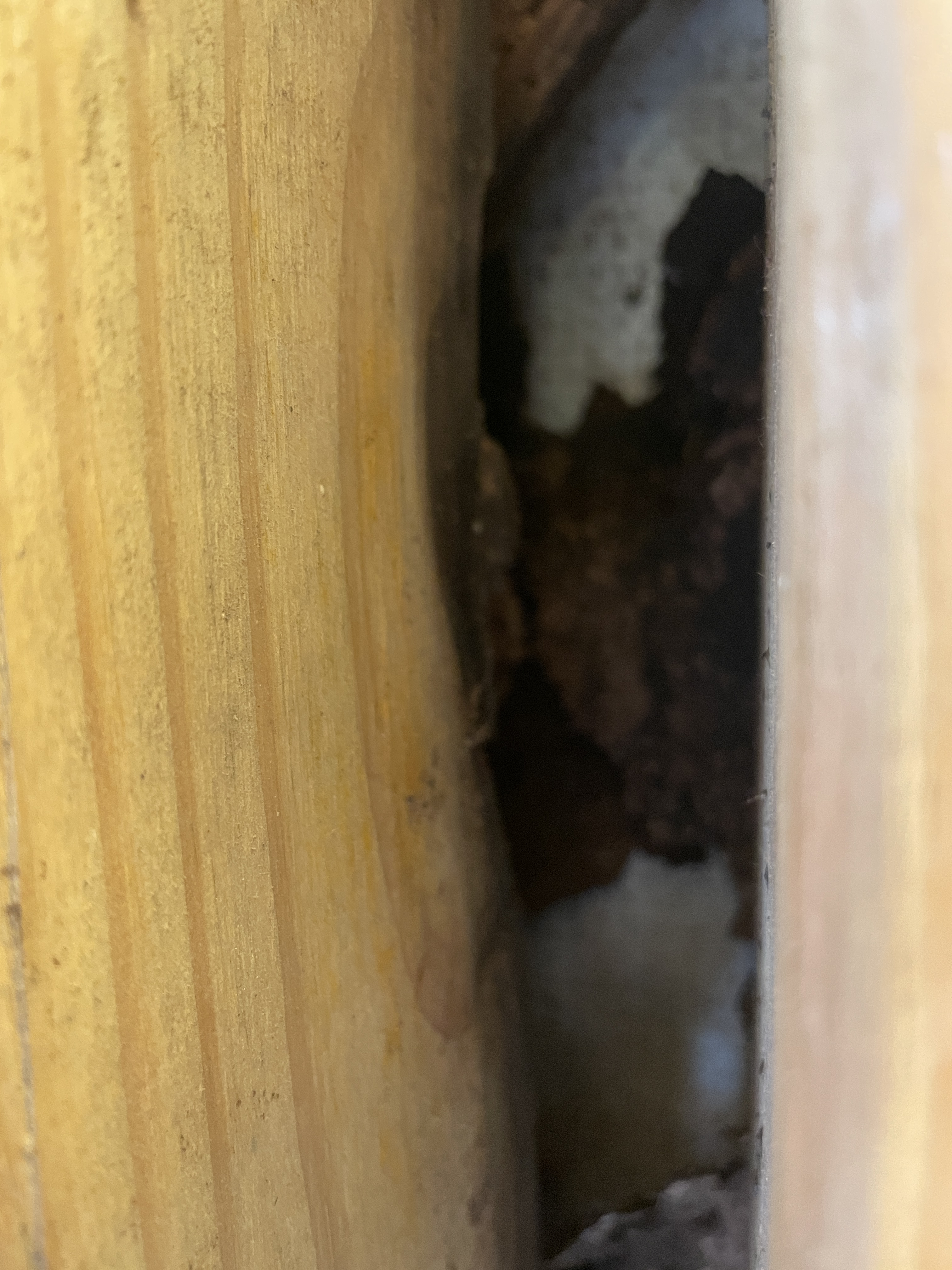 Hard to see, but there is rot along the back of the studs