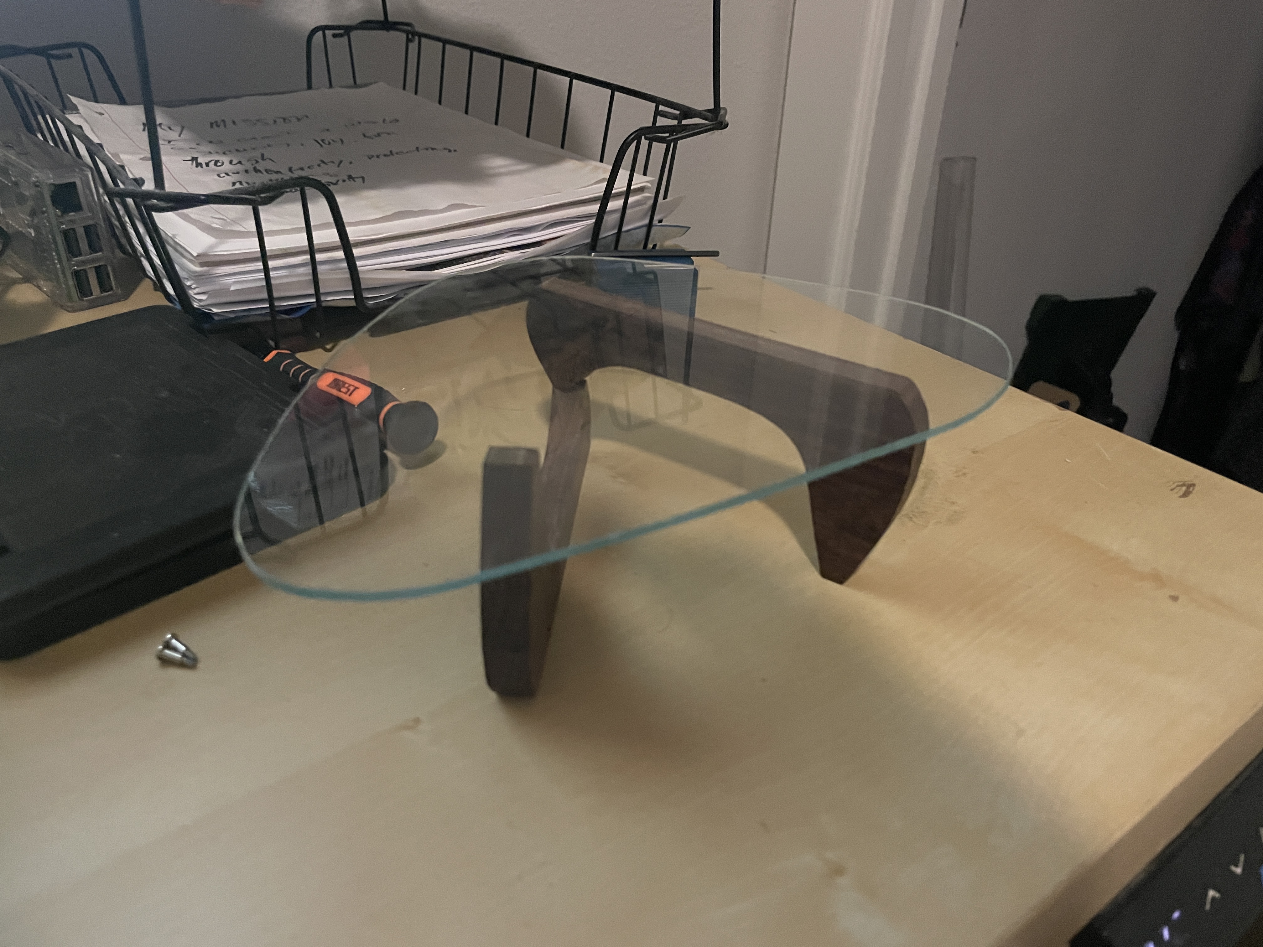 Rough cut - still too thick, lots of sanding and shaping and glass edge polishing to do.